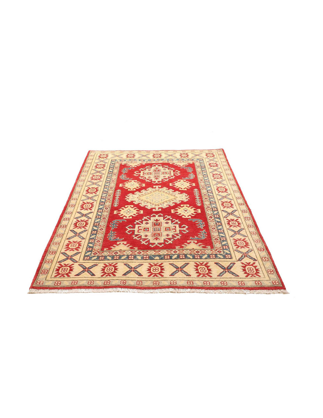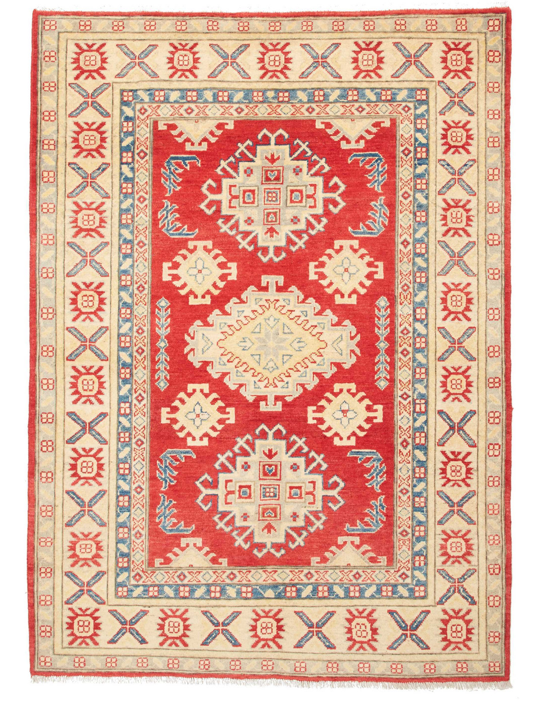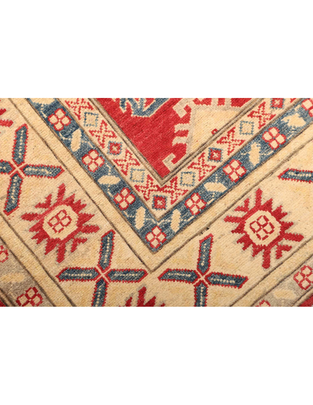 The Kazak Pakistan rugs are among the most fascinating and admired productions in the field of modern Oriental carpets, crafted with remarkable attention to detail and faithfulness to Caucasian traditions. Each rug is hand-knotted by skilled Pakistani artisans who preserve centuries-old techniques, using high-quality wool and natural dyes. These are never mass-produced: every Kazak Pakistan is a one-of-a-kind piece, born from creativity, patience, and dedication.