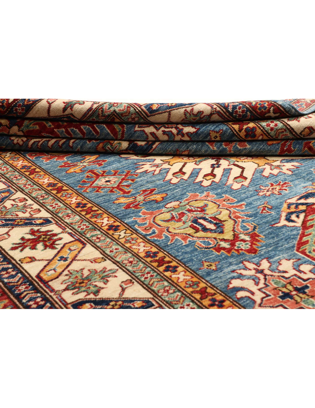 The Kazak Pakistan rugs are among the most fascinating and admired productions in the field of modern Oriental carpets, crafted with remarkable attention to detail and faithfulness to Caucasian traditions. Each rug is hand-knotted by skilled Pakistani artisans who preserve centuries-old techniques, using high-quality wool and natural dyes. These are never mass-produced: every Kazak Pakistan is a one-of-a-kind piece, born from creativity, patience, and dedication.