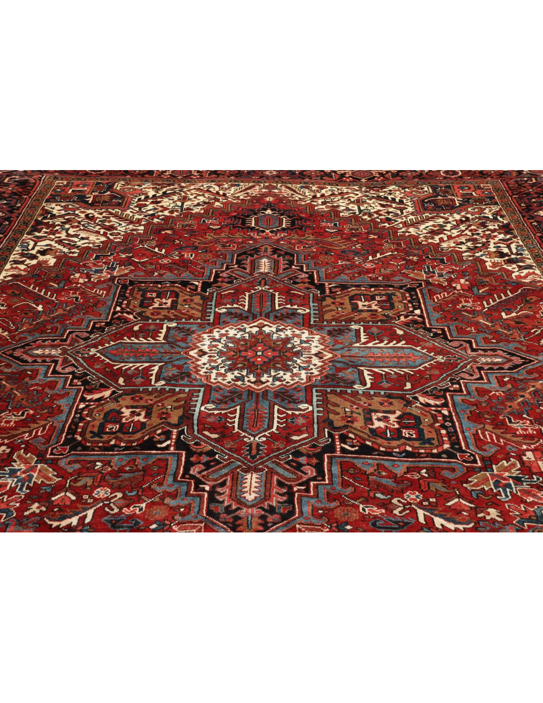 They originate from northwestern Iran, particularly from the Heris area in the Iranian Azerbaijan region. This area, located at altitudes above 1,500 meters, is home to many villages dedicated to weaving. The harsh climate, with snowy winters and relatively cool summers, has long supported sheep farming, producing exceptionally strong wool ideal for making compact and durable rugs.
