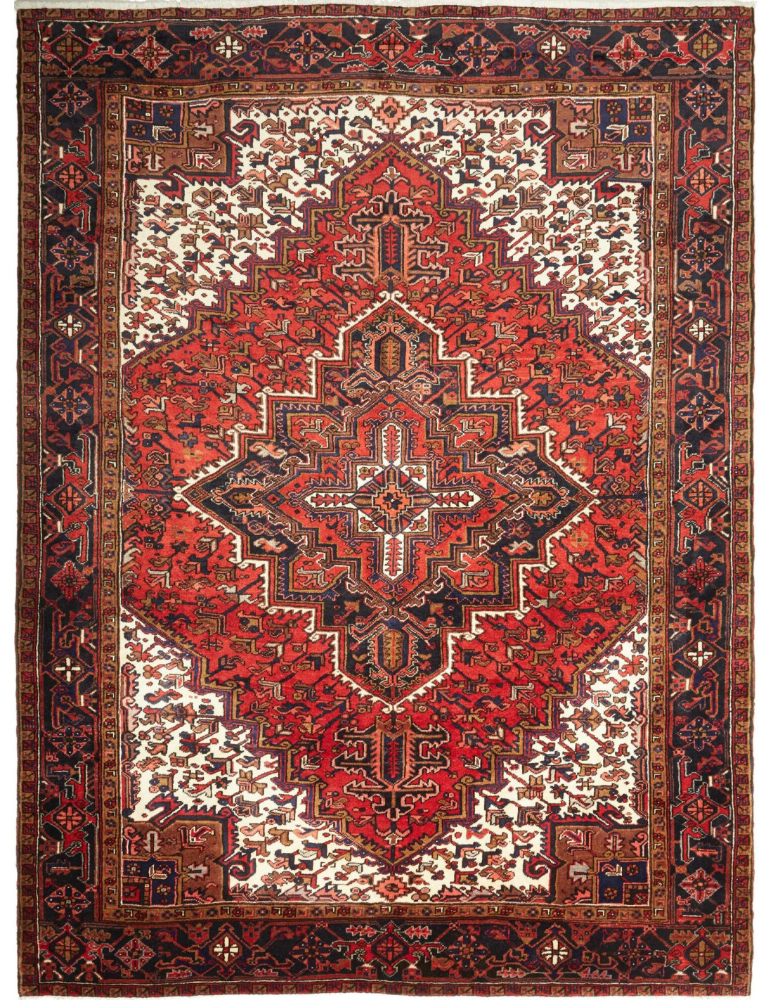 They originate from northwestern Iran, particularly from the Heris area in the Iranian Azerbaijan region. This area, located at altitudes above 1,500 meters, is home to many villages dedicated to weaving. The harsh climate, with snowy winters and relatively cool summers, has long supported sheep farming, producing exceptionally strong wool ideal for making compact and durable rugs.