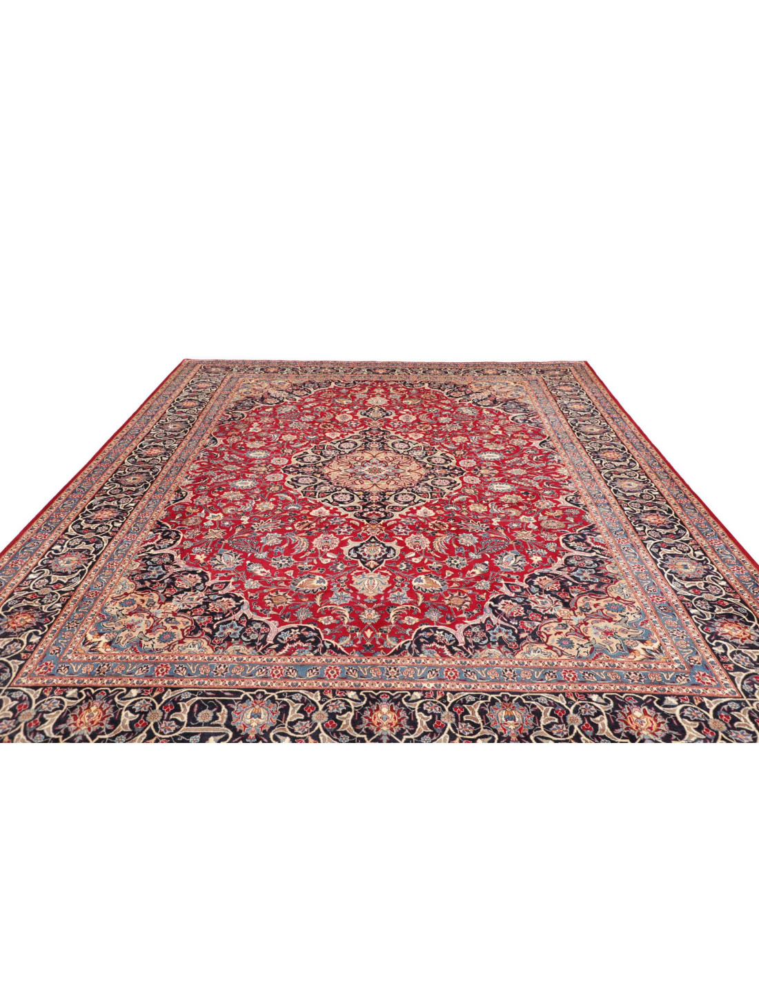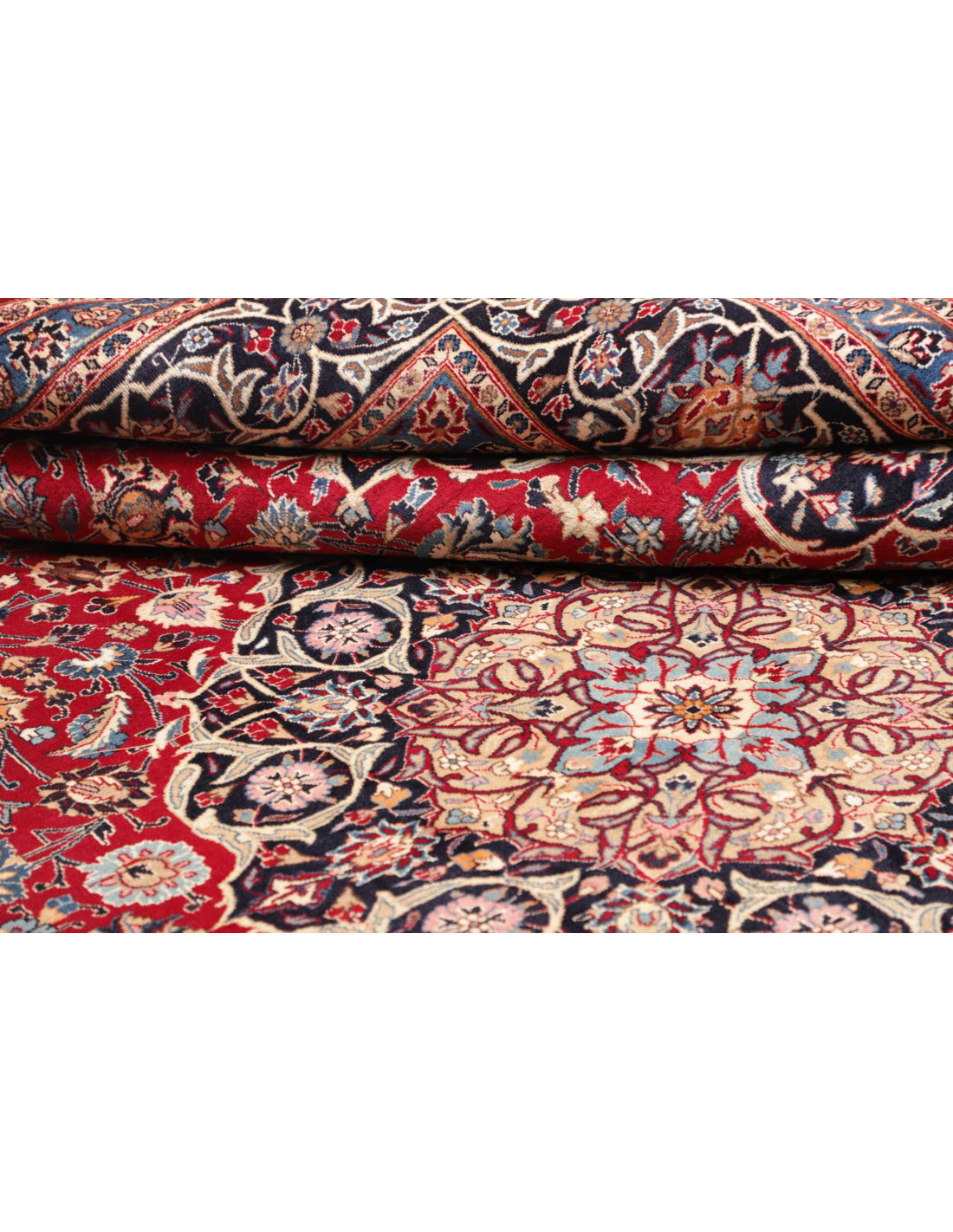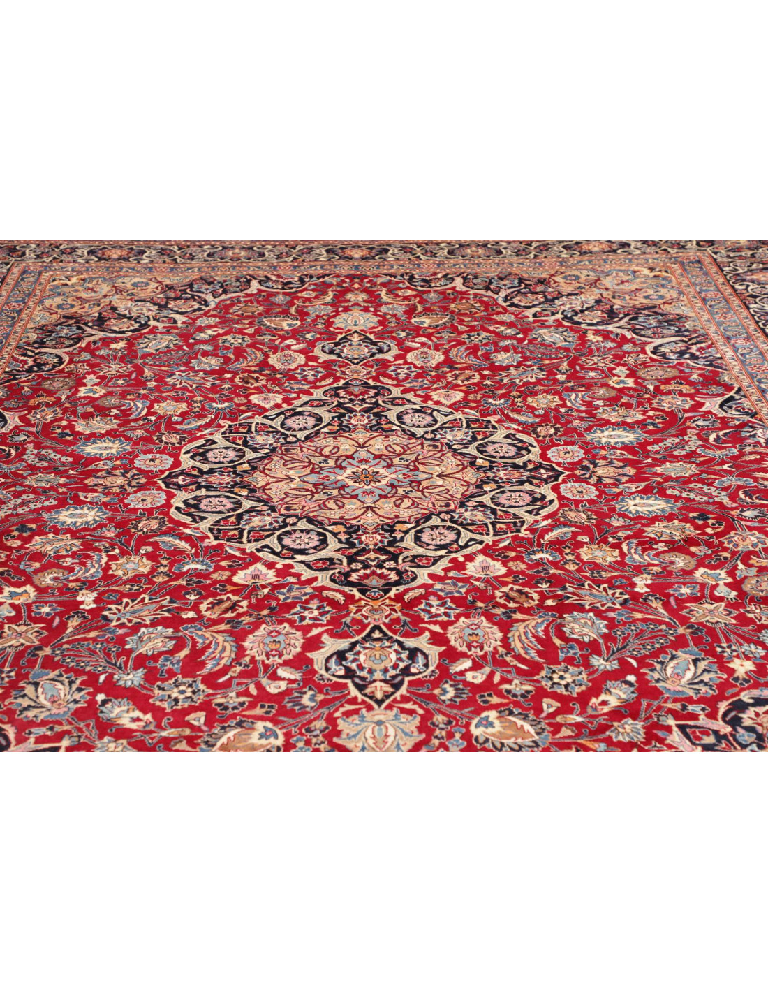 Aesthetically, Mashad rugs are distinguished by their large central medallions surrounded by elaborate floral motifs that spread harmoniously across the field. Dominant colors include deep red and dark blue, complemented by ivory and touches of green, creating regal and sophisticated compositions. Their solid structure and high knot density make them exceptionally durable, perfect for spacious and prestigious interiors.