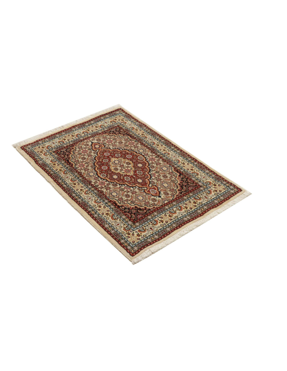 Aesthetically, Moud rugs are distinguished by their refined floral and geometric designs, often arranged around a central medallion or woven in an all-over “Herati” pattern. Common colors include blue, red, and ivory, frequently combined with beige and light brown to create a balanced, luminous palette. Thanks to their high knot density, the motifs appear crisp and detailed, making these rugs highly prized in both classic and contemporary interiors.