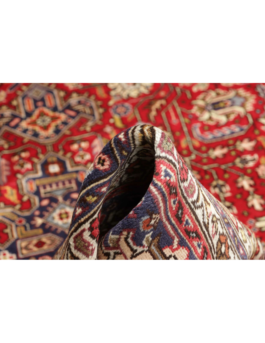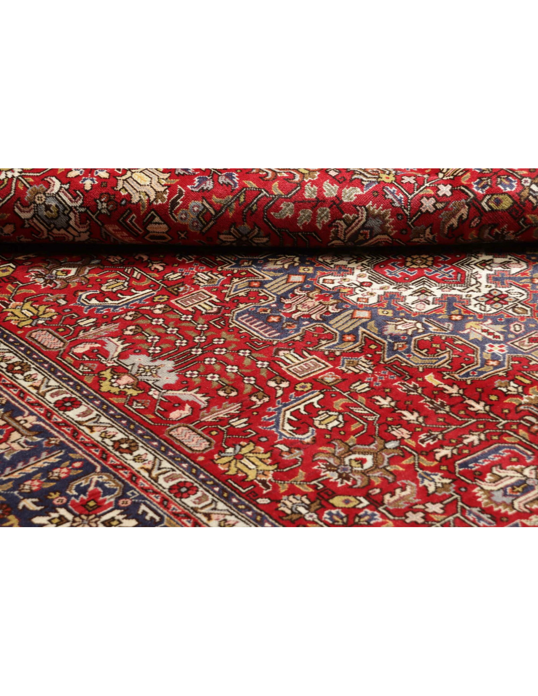 Aesthetically, Tabriz rugs are admired for their wide range of floral and geometric motifs, often featuring elaborate central medallions, arabesque decorations, and even pictorial scenes. Dominant colors include warm tones such as red, blue, ivory, and green, harmoniously combined. Their high knot density allows for highly detailed and precise designs, making every Tabriz rug a true textile masterpiece.