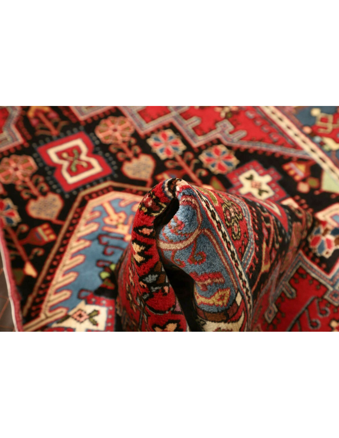 I tappeti Hamadan sono prodotti non solo in città ma anche nei numerosi villaggi circostanti, il che spiega la grande varietà di disegni che li caratterizza. Tra i motivi più comuni troviamo medaglioni centrali, disegni geometrici e motivi floreali stilizzati. I colori dominanti sono il rosso, il blu e l’avorio, sempre vivaci grazie alle tinture naturali. La trama solida e l’annodatura robusta li rendono tappeti versatili, adatti a molteplici contesti d’arredo.