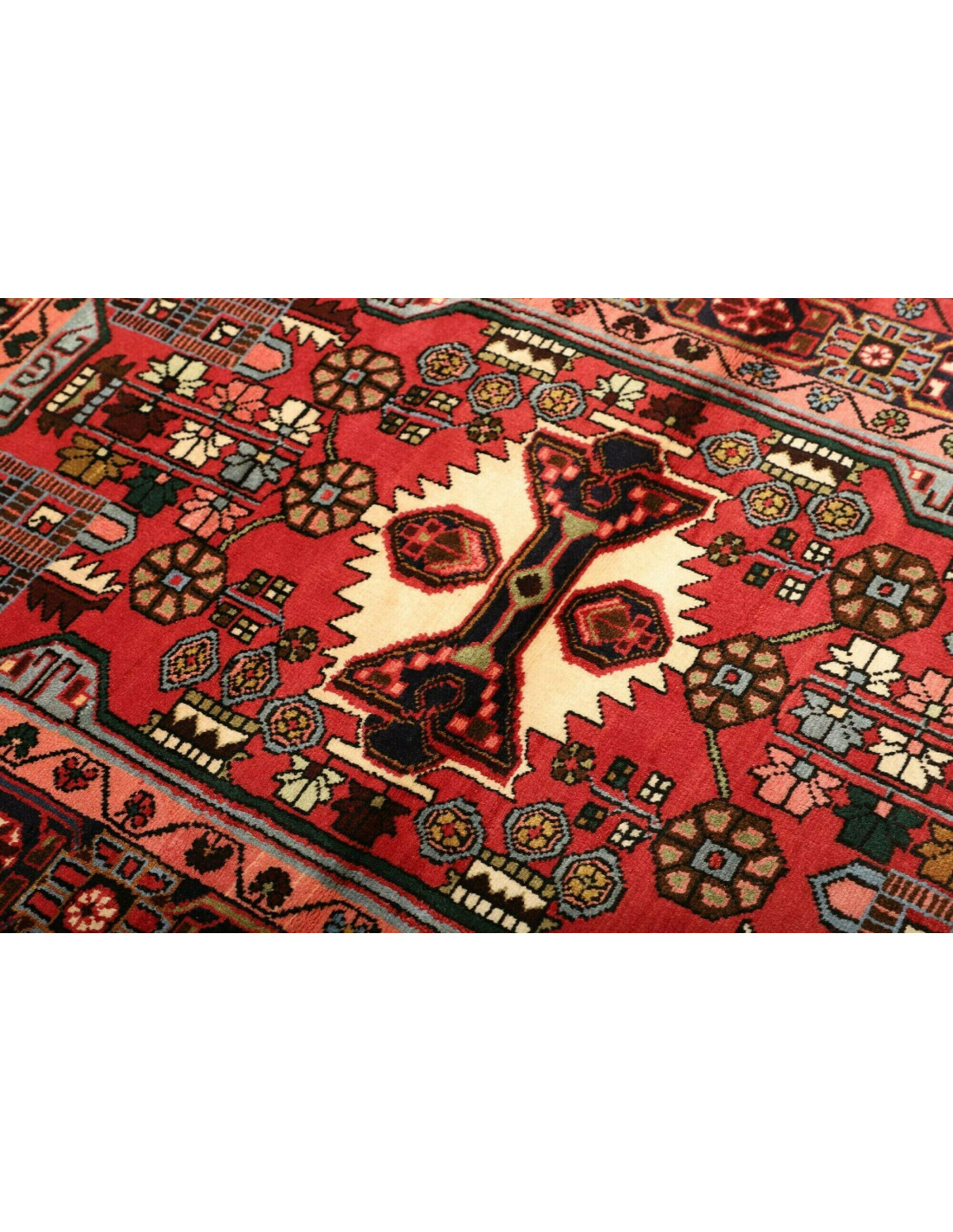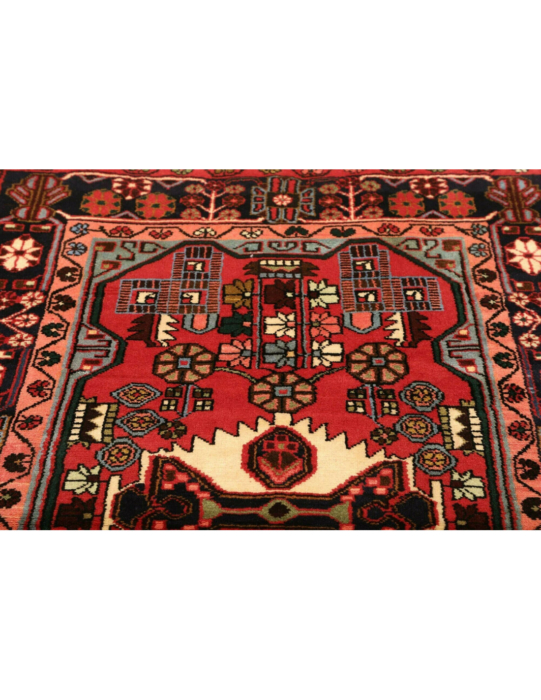 I tappeti Hamadan sono prodotti non solo in città ma anche nei numerosi villaggi circostanti, il che spiega la grande varietà di disegni che li caratterizza. Tra i motivi più comuni troviamo medaglioni centrali, disegni geometrici e motivi floreali stilizzati. I colori dominanti sono il rosso, il blu e l’avorio, sempre vivaci grazie alle tinture naturali. La trama solida e l’annodatura robusta li rendono tappeti versatili, adatti a molteplici contesti d’arredo.