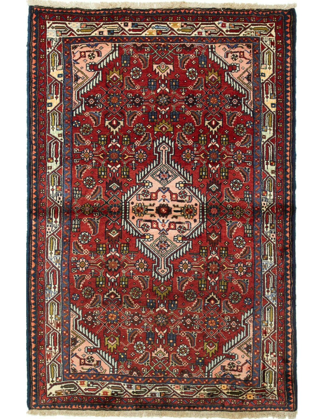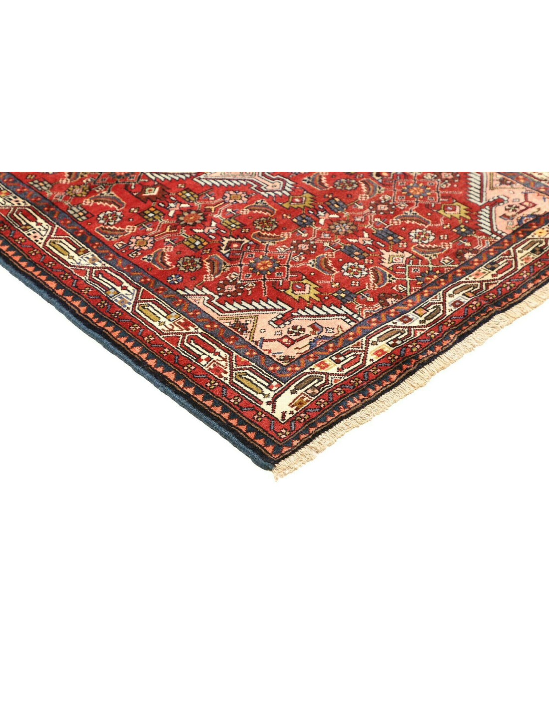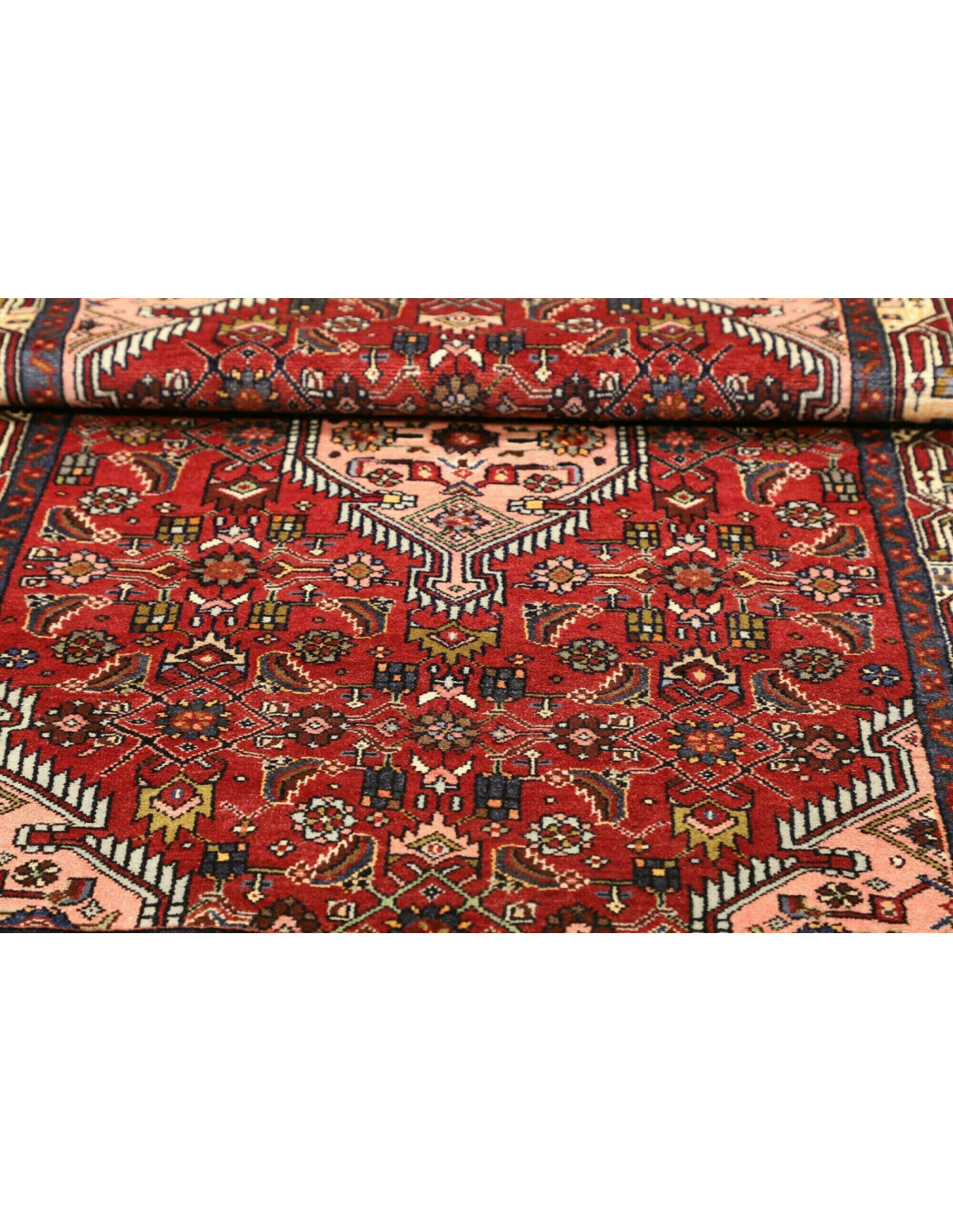 I tappeti Hamadan sono prodotti non solo in città ma anche nei numerosi villaggi circostanti, il che spiega la grande varietà di disegni che li caratterizza. Tra i motivi più comuni troviamo medaglioni centrali, disegni geometrici e motivi floreali stilizzati. I colori dominanti sono il rosso, il blu e l’avorio, sempre vivaci grazie alle tinture naturali. La trama solida e l’annodatura robusta li rendono tappeti versatili, adatti a molteplici contesti d’arredo.