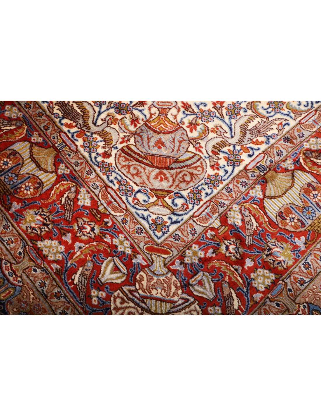 I tappeti Kashmar Zirkhaki sono tra i più rari e affascinanti della tradizione persiana, riconoscibili per i loro motivi unici che raccontano vere e proprie storie tessute. Ogni esemplare è realizzato a mano con tecniche artigianali tramandate da generazioni, utilizzando lane di alta qualità e tinture naturali. Non si tratta di tappeti prodotti in serie: ogni Kashmar Zirkhaki è un pezzo unico, destinato a chi cerca un’opera capace di unire bellezza e significato.