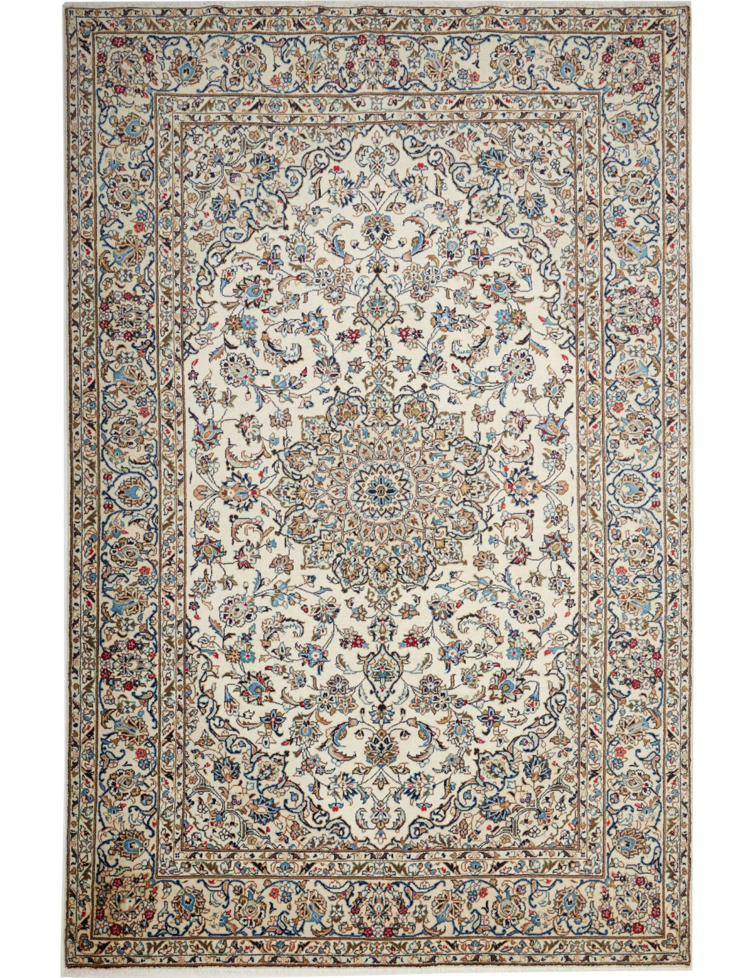 Dal punto di vista estetico, i tappeti Kashan sono celebri per i motivi floreali ricchi e raffinati, i medaglioni centrali armoniosi e le cornici elaborate. I colori predominanti sono il rosso rubino, il blu intenso e l’avorio, combinati per creare tappeti eleganti e luminosi, capaci di valorizzare qualsiasi ambiente, dal classico al moderno. La densità dell’annodatura conferisce ai disegni una precisione straordinaria, rendendo ogni tappeto un vero e proprio capolavoro tessile.