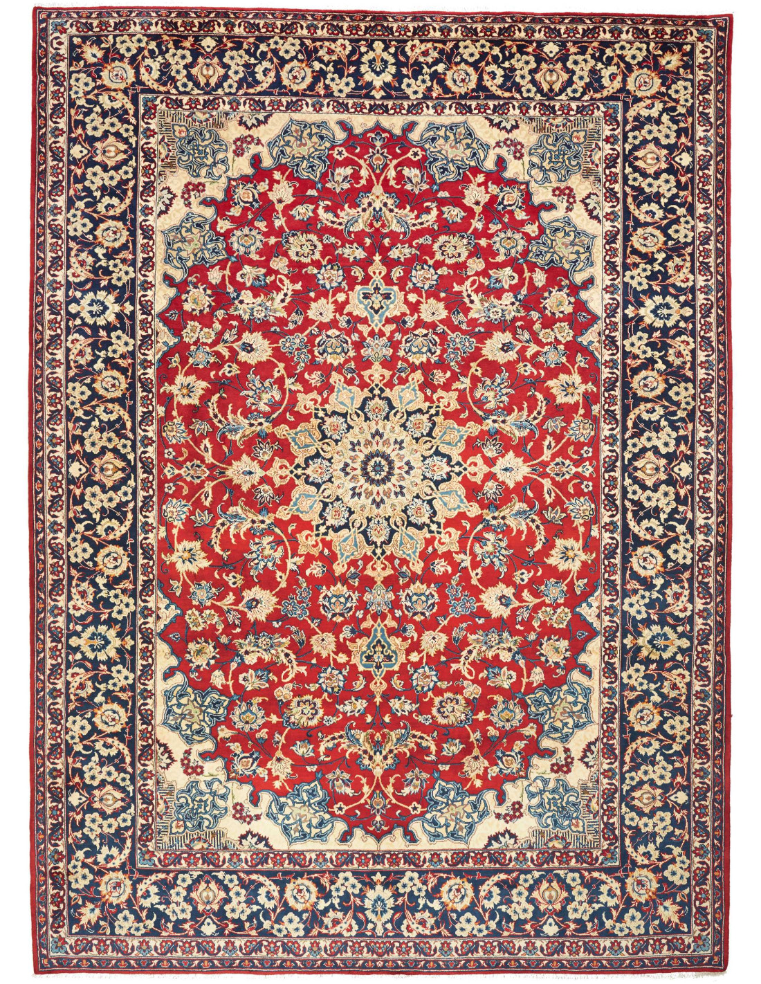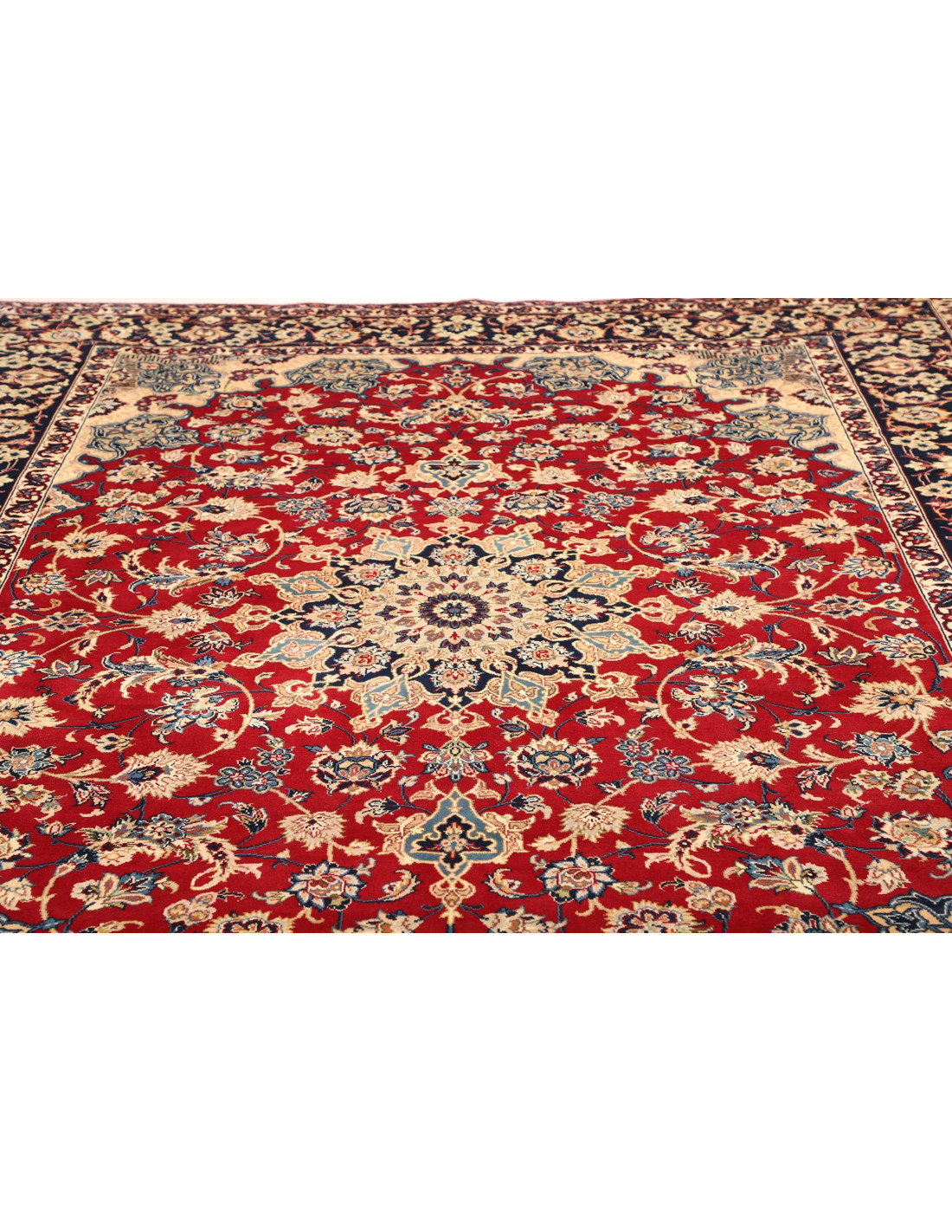 I tappeti Nadjafabad si distinguono per i motivi floreali ricchi e armoniosi, spesso con medaglioni centrali e cornici elaborate che ricordano lo stile dei tappeti Isfahan, ma con una personalità propria. I colori predominanti sono il rosso, il blu e l’avorio, combinati in composizioni eleganti e luminose. L’annodatura fine e la trama compatta assicurano tappeti resistenti e durevoli, capaci di mantenere la loro bellezza nel tempo.