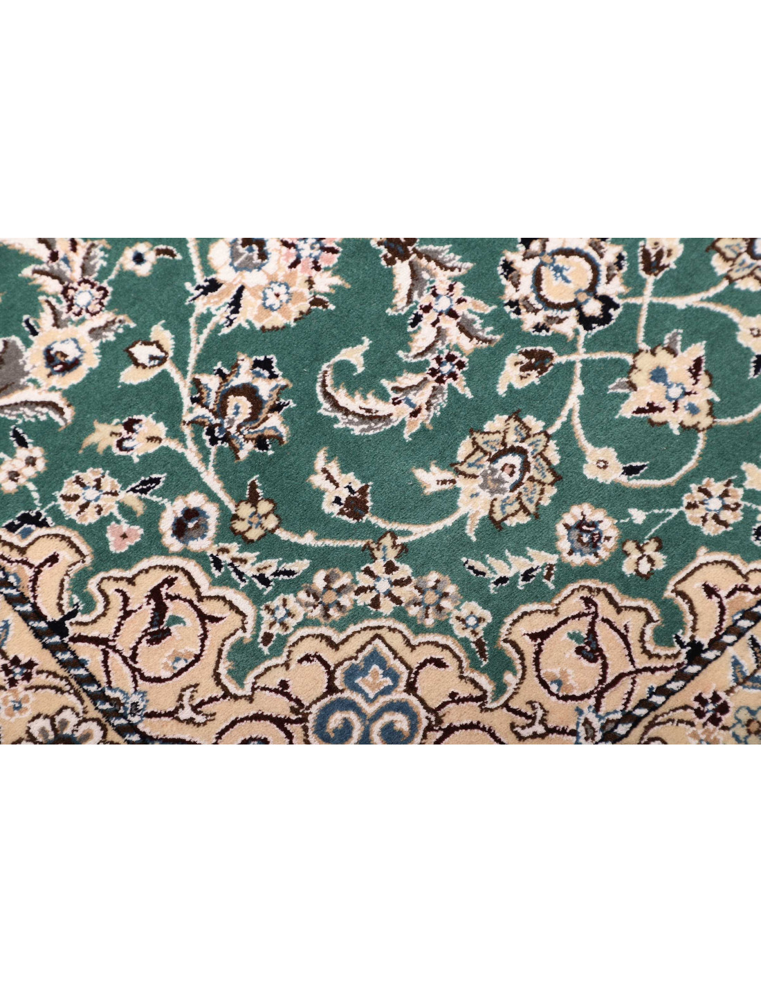Dal punto di vista estetico, i tappeti Nain 9La si distinguono per i loro motivi floreali e arabeschi delicati, spesso organizzati intorno a un medaglione centrale e arricchiti da cornici armoniose. I colori predominanti sono tonalità raffinate come avorio, beige e blu, con contrasti delicati che conferiscono al tappeto un aspetto luminoso ed elegante. La dicitura “9La” indica l’uso di filati leggermente più spessi rispetto ai Nain 6La, garantendo comunque un’altissima qualità ma con un costo più accessibile, mantenendo lo stesso fascino intramontabile.
