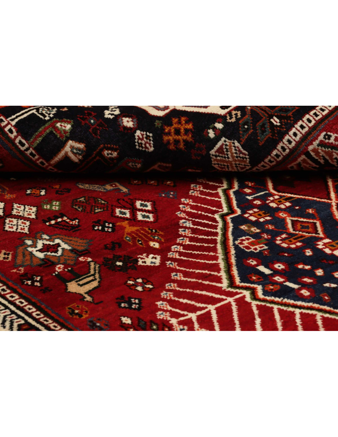Esteticamente, i tappeti Shiraz Fine si distinguono per i motivi geometrici elaborati, arricchiti da medaglioni a rombo, figure stilizzate di animali e simboli tribali reinterpretati con maggiore precisione. La gamma cromatica include rosso intenso, blu profondo, avorio e arancio, spesso armonizzati con tonalità più delicate rispetto ai tappeti Shiraz tradizionali. L’annodatura più fine permette di ottenere disegni nitidi e ben definiti, rendendo questi tappeti ideali per chi cerca autenticità ma anche eleganza formale.