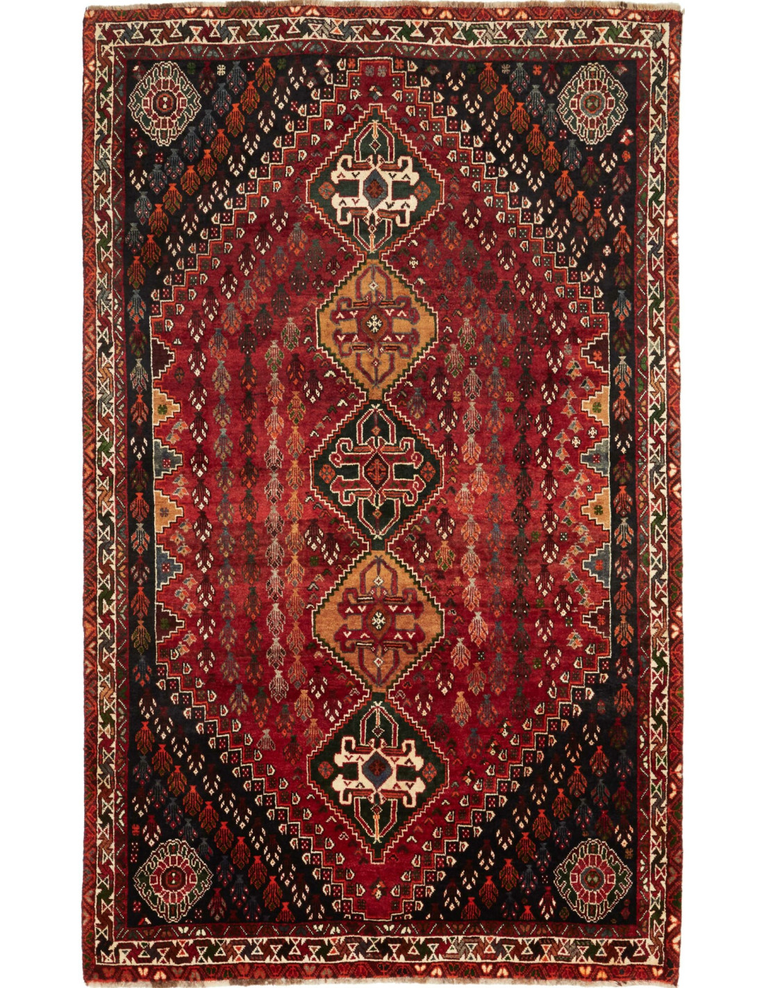 Questi tappeti provengono dalla città di Shiraz, capoluogo della provincia di Fars, situata nel sud dell’Iran e abitata da circa 1,5 milioni di persone. Shiraz è conosciuta come la “città dei poeti e dei giardini” ed è celebre per la sua storia millenaria, i suoi mercati tradizionali e i legami con le tribù nomadi come i Qashqai e i Khamseh. Il clima è continentale caldo, con estati torride e inverni miti, un ambiente che ha influito sulla vita nomade e sulle decorazioni ispirate alla natura.