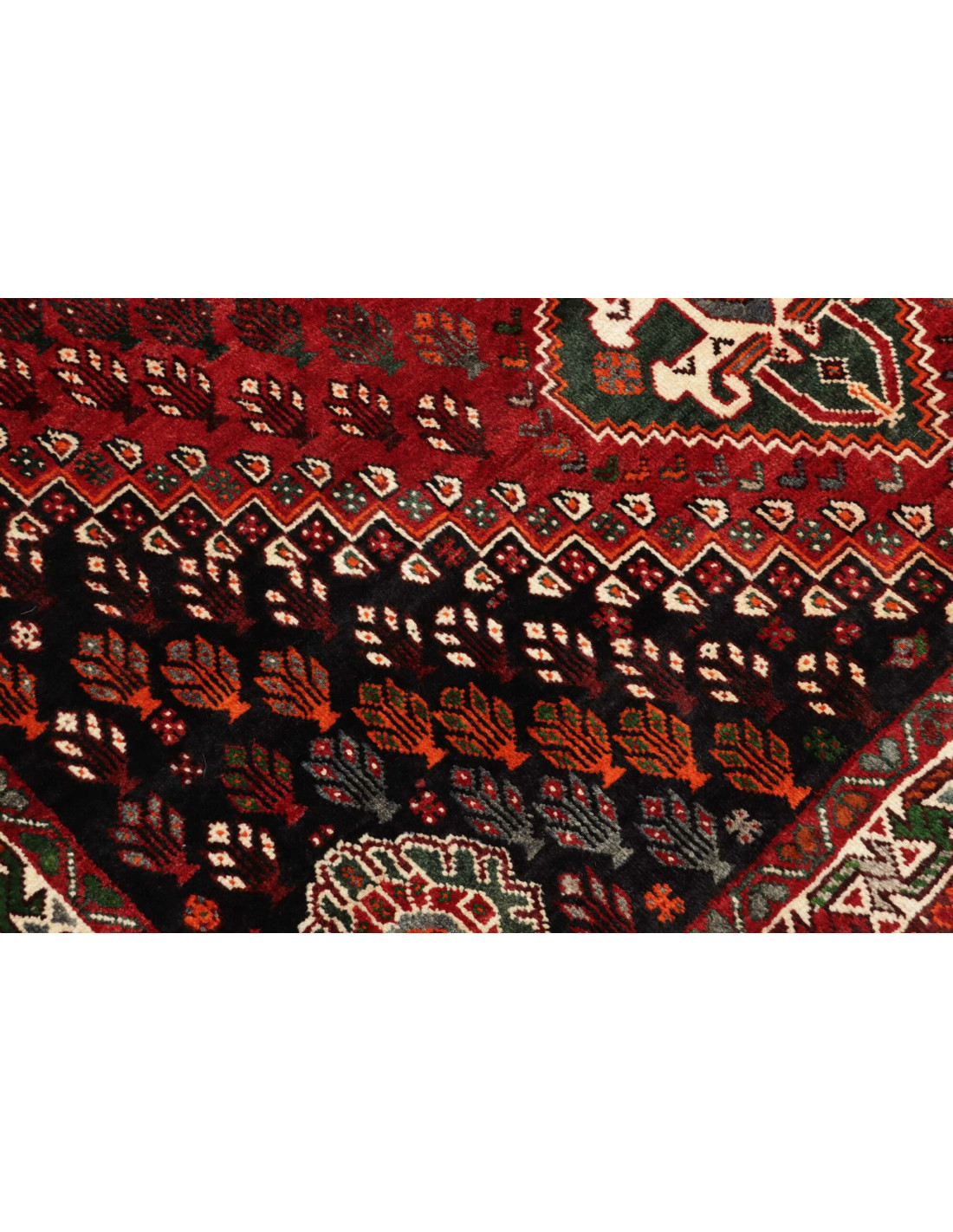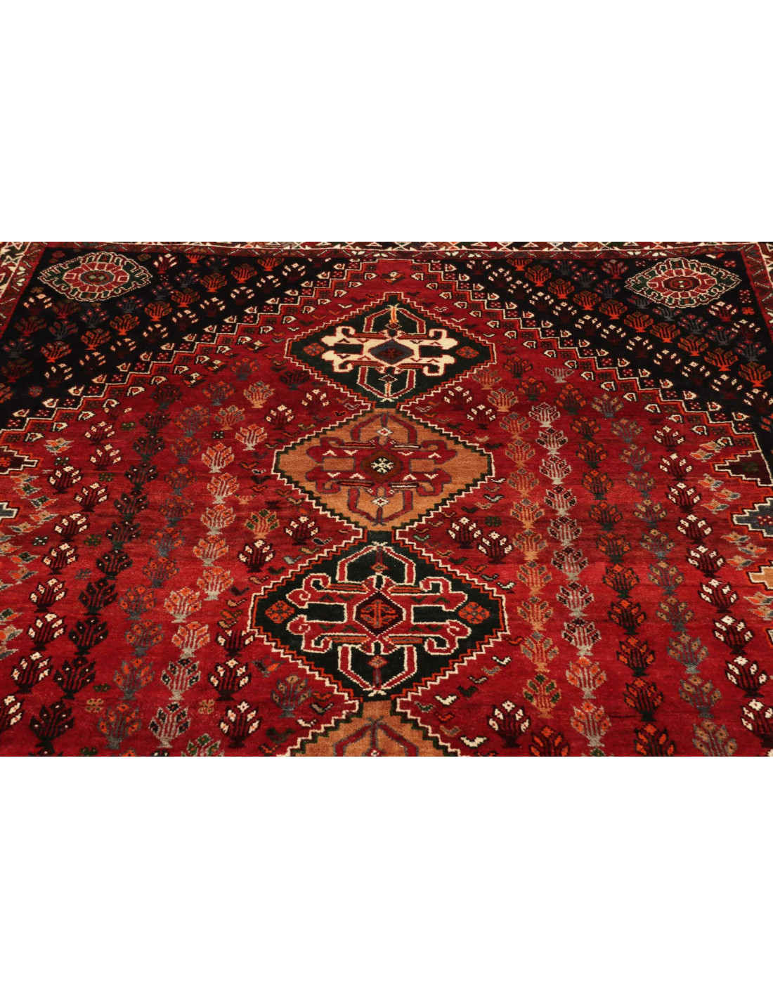 Esteticamente, i tappeti Shiraz si distinguono per i motivi geometrici audaci, spesso caratterizzati da grandi medaglioni a rombo, figure stilizzate di animali e simboli tribali. I colori predominanti includono rosso intenso, blu scuro, arancio e avorio, combinati in modo vivace e spontaneo. La loro tessitura non è fittissima come quella dei tappeti più formali, ma proprio questa caratteristica conferisce agli Shiraz un fascino autentico e genuino, ideale per chi cerca un tappeto dal carattere forte e identitario.