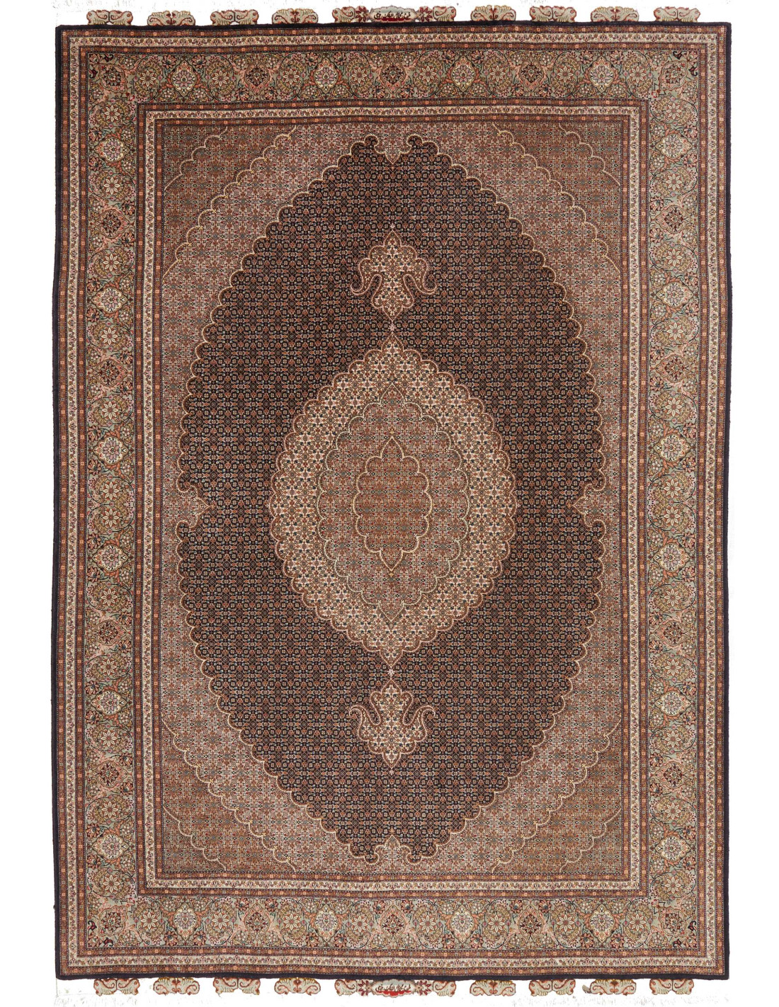 I tappeti Tabriz 50 Raj Mahi rappresentano una delle espressioni più raffinate della tradizione tessile persiana, caratterizzati dalla combinazione tra l’altissima densità di nodi e il celebre disegno Mahi (pesce), uno dei motivi più antichi e iconici dell’arte del tappeto. Ogni esemplare è annodato a mano con circa 50 nodi per raj, utilizzando lane finissime e seta naturale che donano luminosità ed eleganza straordinaria ai dettagli. Non sono tappeti prodotti in serie: ciascun Tabriz 50 Raj Mahi è un pezzo unico, frutto di mesi o anni di lavoro meticoloso.