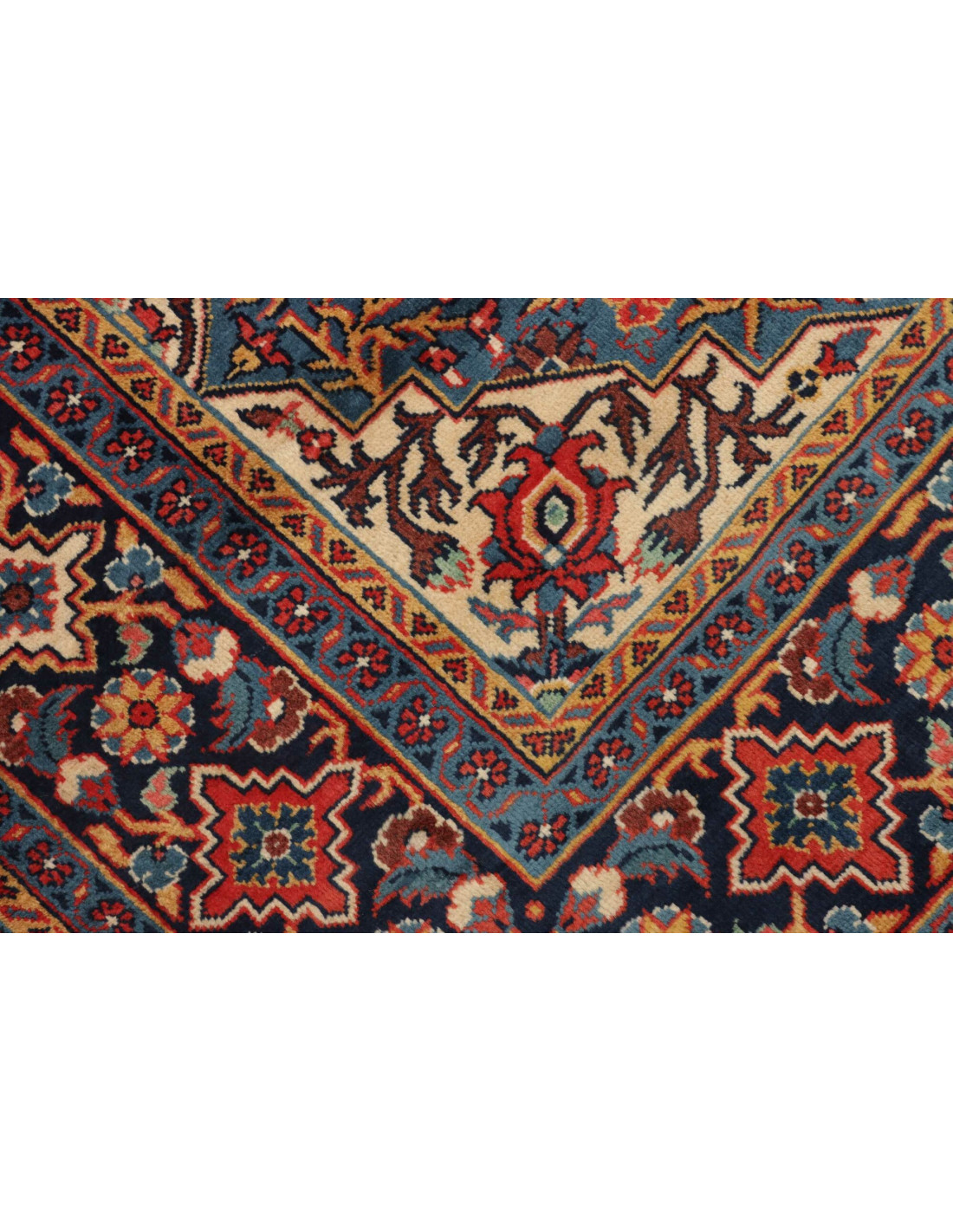 Esteticamente, i tappeti Wiss sono riconoscibili per i grandi medaglioni geometrici, spesso incorniciati da motivi floreali stilizzati e bordure riccamente decorate. La gamma cromatica predilige il rosso, il blu e l’avorio, talvolta accompagnati da accenti verdi e beige che conferiscono vivacità ed equilibrio. La loro struttura compatta e la solidità della lana li rendono ideali sia per ambienti classici che per interni moderni che vogliono aggiungere un tocco autentico di tradizione persiana.